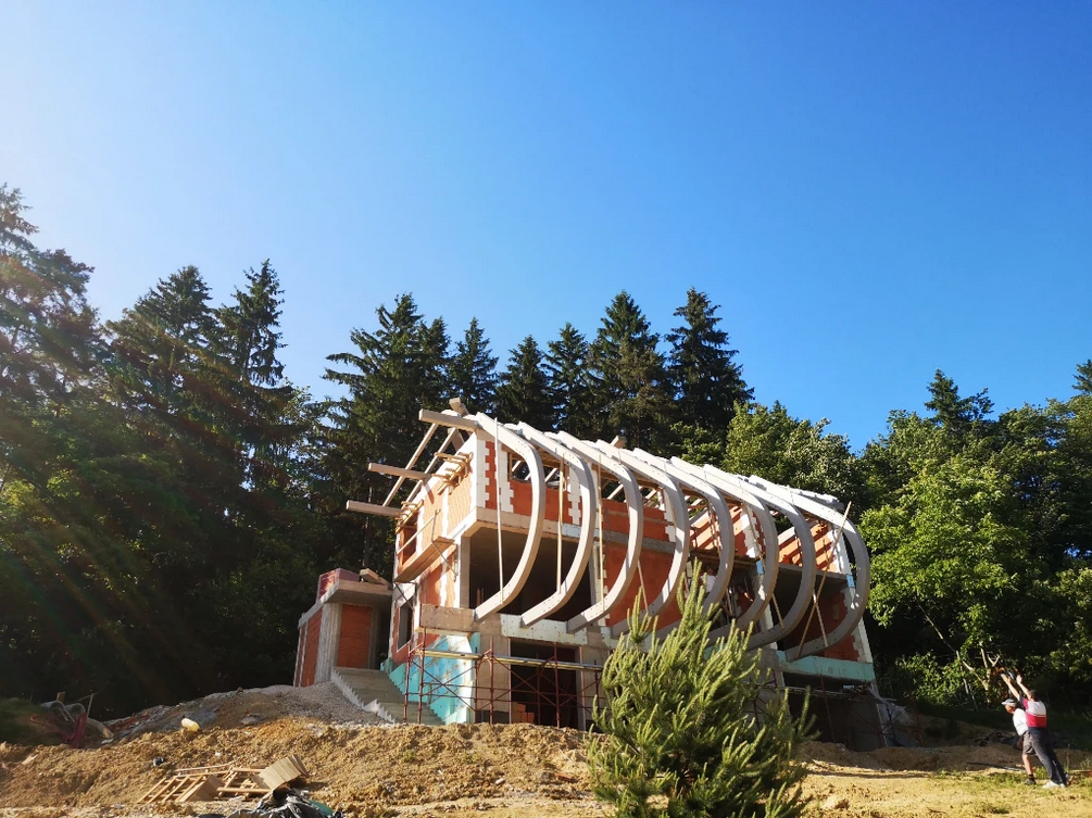 - gradnja lesene hiše,