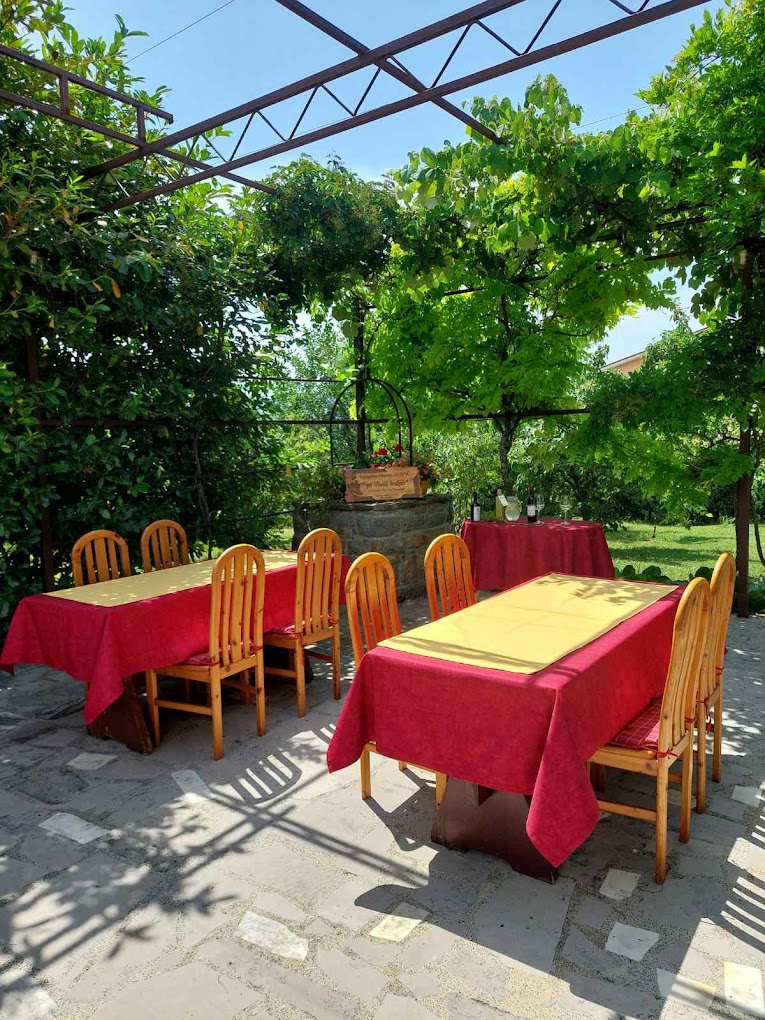 Domača hrana po predhodnem naročilu, tradicionalne in posebne jedi iz doma pridelane zelenjave, sadja in lokalnih mesnin. Poudarek na domači zelenjavi in oljčnem olju. Doma pečen kruh in peciva, vložena zelenjava-melancane in peski, popečen pršut v vinski omaki, čudoviti kuhani štruklji z domačo lokalno skuto, doma delana pašta z refoškom, sveže delsni njoki z raznimi golaži, tradicionalna mineštra bobiči z mlado koruzo, razna sezonska zelenjava in drugo. Možni so menuji za vegetarijance, vegane ali osebe s posebnimi prehranjevalnimi režimi. Uporabljajo lastno oljčno olje.