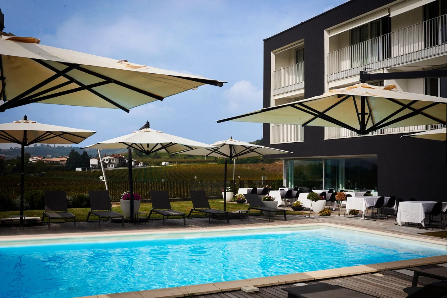 Sobe vključujejo velik balkon s pogledom na vinograde ali ogrevan bazen. Opremljene so v črnih in belih tonih, nekatere pa samo v beli barvi. Vse vključujejo pohištvo znanih italijanskih proizvajalcev in klimatsko napravo.